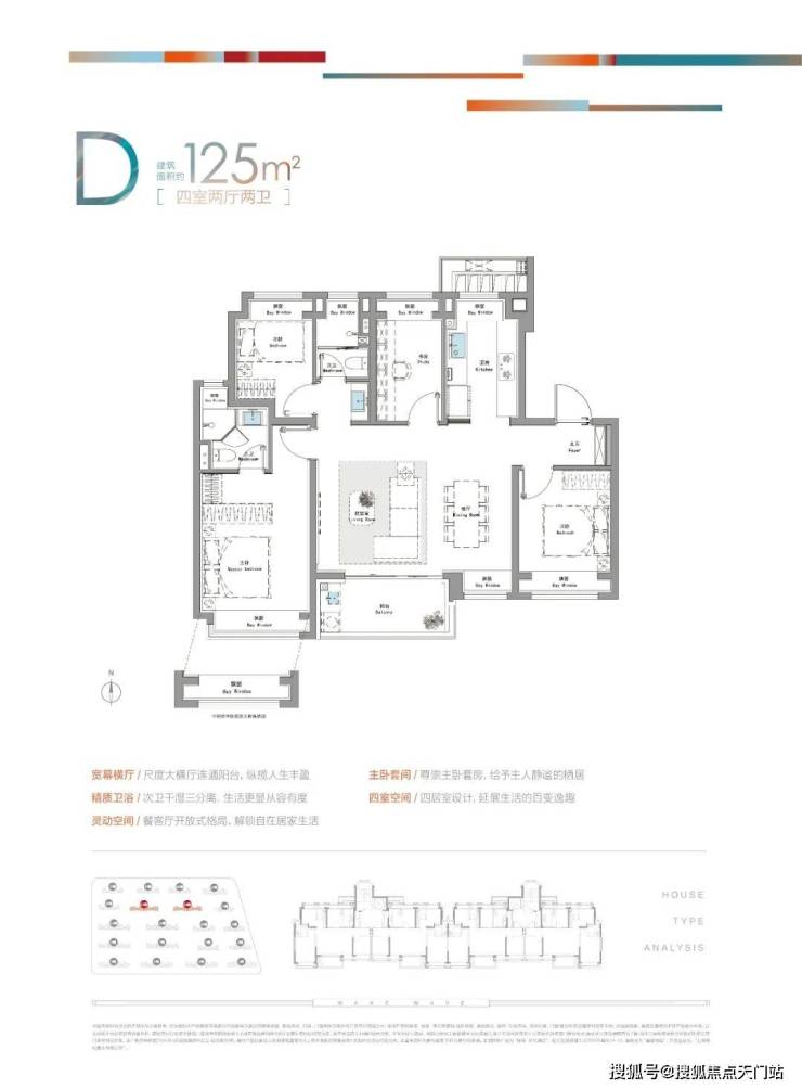 建面约125㎡4房户型图▼