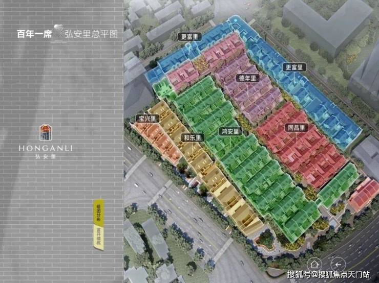 弘安里这块地原由8个街坊组成,其中东寿坊和永安里因后期加建改建较大,体量也很小,为了园区整体考虑,不再保留, 延续了剩余6个组团:德年里、和乐里、宝兴里、更富里和鸿安里。
