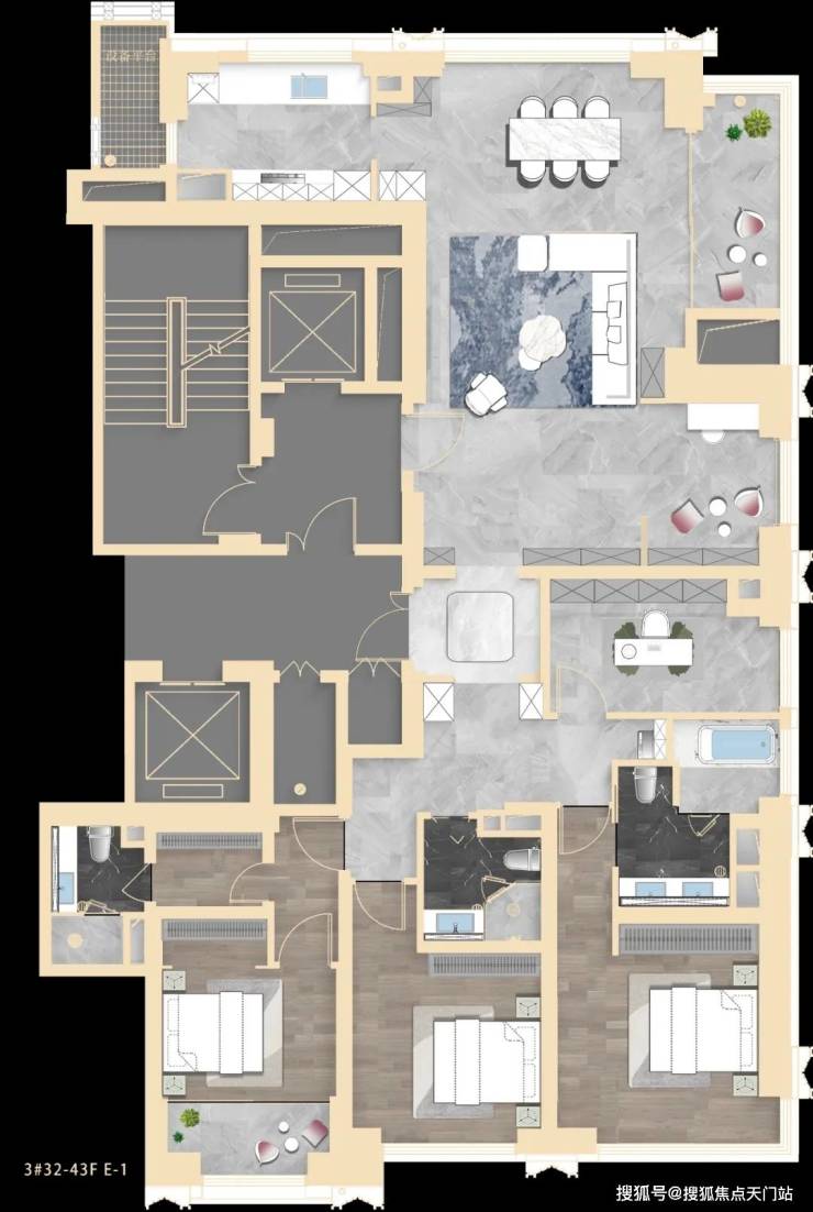 因为寸土寸金,市中心项目不会有太集中的中心景观。而海玥黄浦源,因地制宜进行“一星四叶”的建筑排布,围合出了市心少见的约3000㎡集中景观。