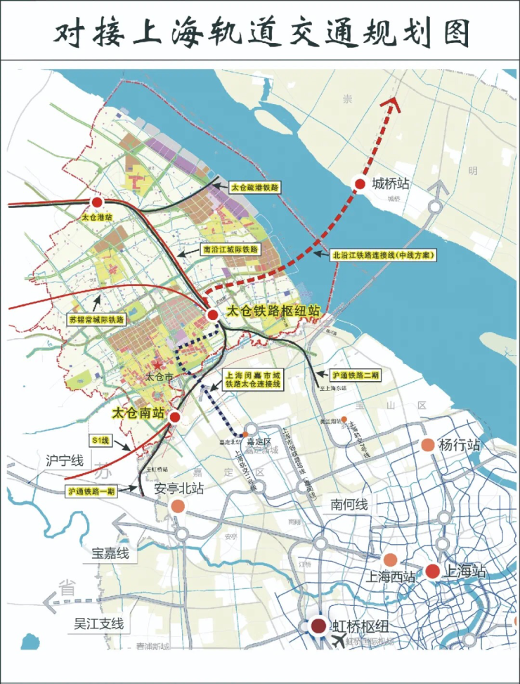 目前“1+5+N”规划体系已初步建立;高铁太仓站已启用;白云渡大道对接嘉定城北路工程已竣工通车;太仓大道、十八港路等一批基础设施开工建设,苏锡常城际铁路与嘉闵线共建段加快推进。