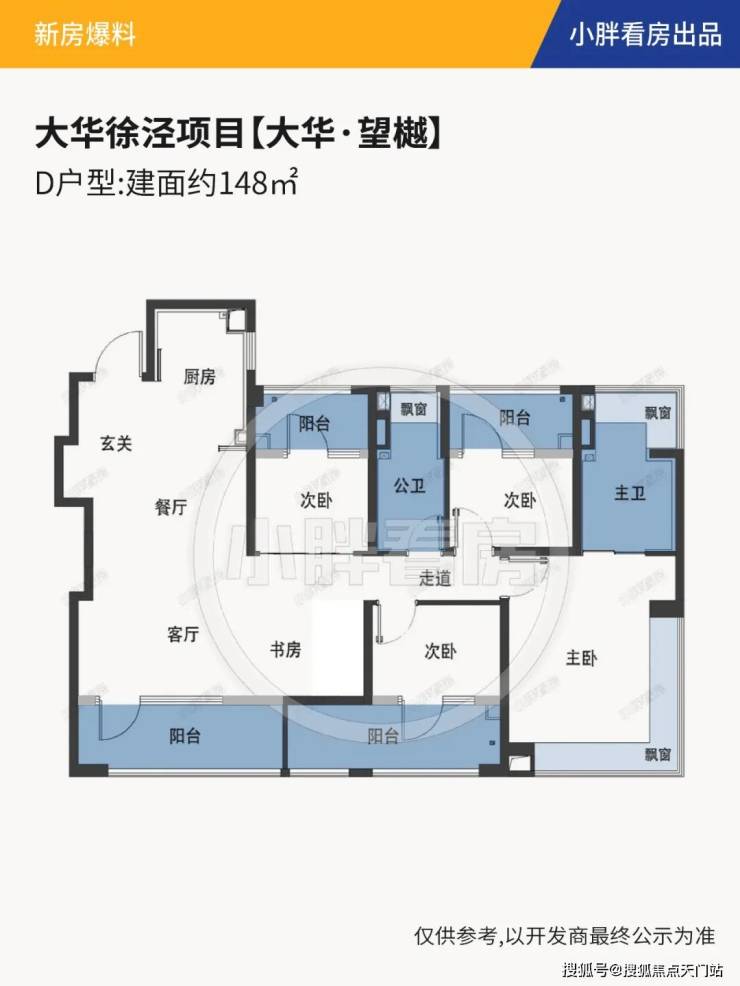 建面约148㎡户型更是做到了惊人的 四阳台 配置,远远超过新规标准。