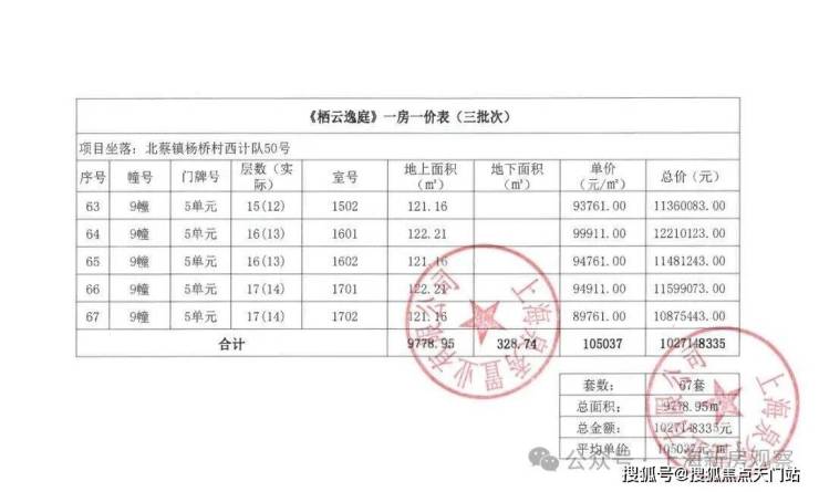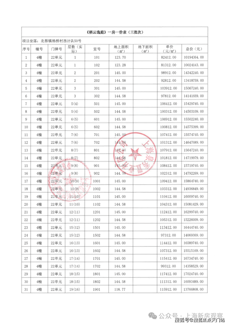 上期一房一价表如下: