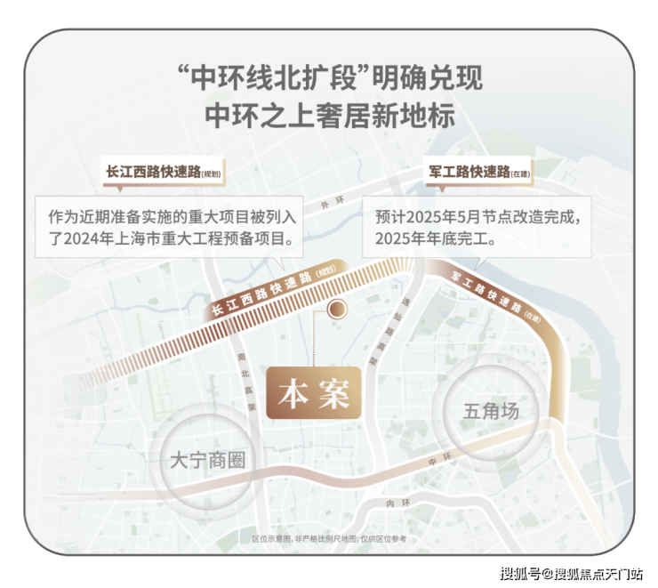 军工路快速路新建工程预计今年年内完工,意味中环北抬今年将迈出重要一步,而长江西路快速路已被列入2025年上海市重大工程清单,预计即将开工。
