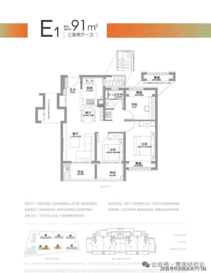 “南向双阳台+南北双飘窗”,构筑真3房户型!