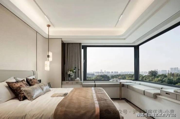 卧室同样颇具惊喜:边套户型配备 约270°转角飘窗,推窗而见皆是景色;主卧不仅 自带独立卫浴,还预留衣帽空间,能够同时满足男女主人的双衣柜需求,心爱的西装、手袋、礼裙都有了专属的陈列场。