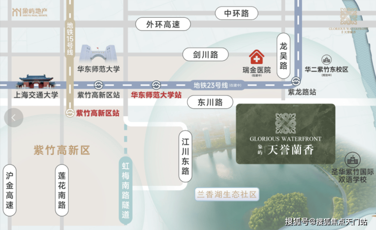 项目坐享兰香湖“15分钟烫金生活版图”,举步即达华师大附属紫竹小学、华师大第二附属中学、圣华紫竹国际双语学校等全龄优教学府,咫尺上海交通大学、华东师范大学两大985高校;近享龙华医院吴泾分院、瑞金医院闵行分院(在建)等权威医疗设施;毗邻赛艇俱乐部、马术运动中心(规划)等高尚休闲;步行可达地铁15/23号线(在建)双轨枢纽站点“紫竹高新区站”,步行范围内即享繁盛配套。