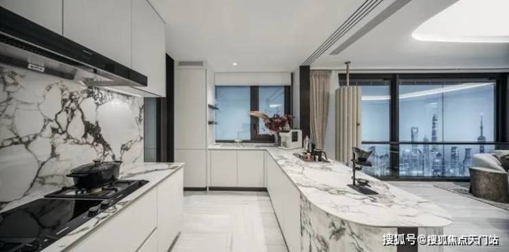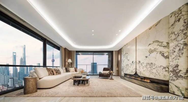 以建面约228㎡的边套户型为例,其打造的约17米连续观景面,配合转角落地窗的设计,将景观对室内的渗透做到了极致 。无论是对望陆家嘴的“三件套”,还是欣赏北外滩的璀璨天际线城景,这种视觉冲击力,确实是滨江豪宅应有的气场。