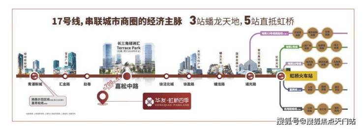 地块直线距约500米,就是17号线嘉松中路站,它是一个纯正的虹桥地铁房!