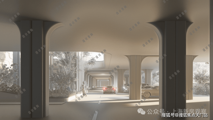 上海截止目前大采光量的阳光地库:通过下沉会所+每栋楼的下沉花园实现,将自然光和通风引入地下车库,减少压抑感,改善环境,降低能耗,同时最大化地下空间利用与优化停车体验。
