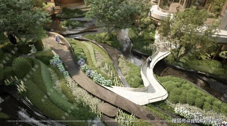 中央核心空间近4000平:抬板后中央空间更具备垂直落差感;下沉庭院挑空面积能做到最大,实现立体景观绿化,在抬板层进行大面积的绿化造景,形成“空中花园”。同时为低层住户提供优美的窗景。