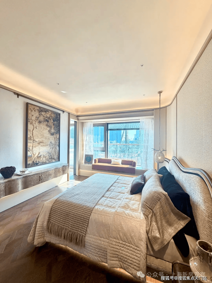 两开间采光主卧设计:8m采光主卧,睡眠区270度全景卧室,衣帽间三重分区收纳,卫生间明媚采光,独立玄关;
