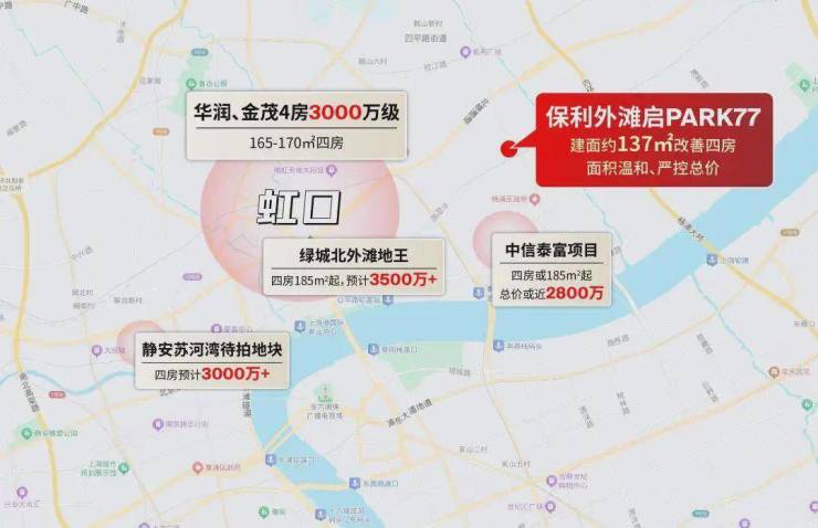 在虹口、杨浦四房普遍站上2800万级的当下,保利外滩启PARK77建面约137平改善4房,堪称“用温和总价实现一步到位” 的稀缺之选。