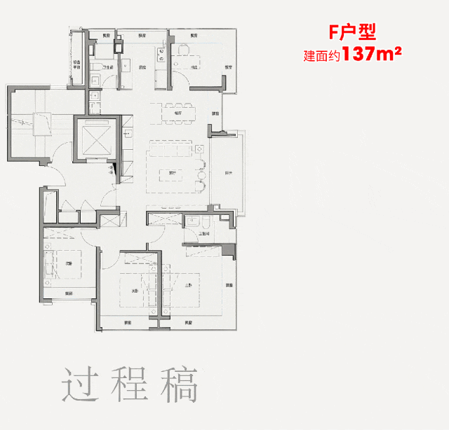 F户型:侧向横厅布局,客餐厅面宽达约6.4 米,空间开阔感十足;同时做到三房朝南,采光充沛;更配置专门洗烘区域,让家庭生活井井有条,细节满分。