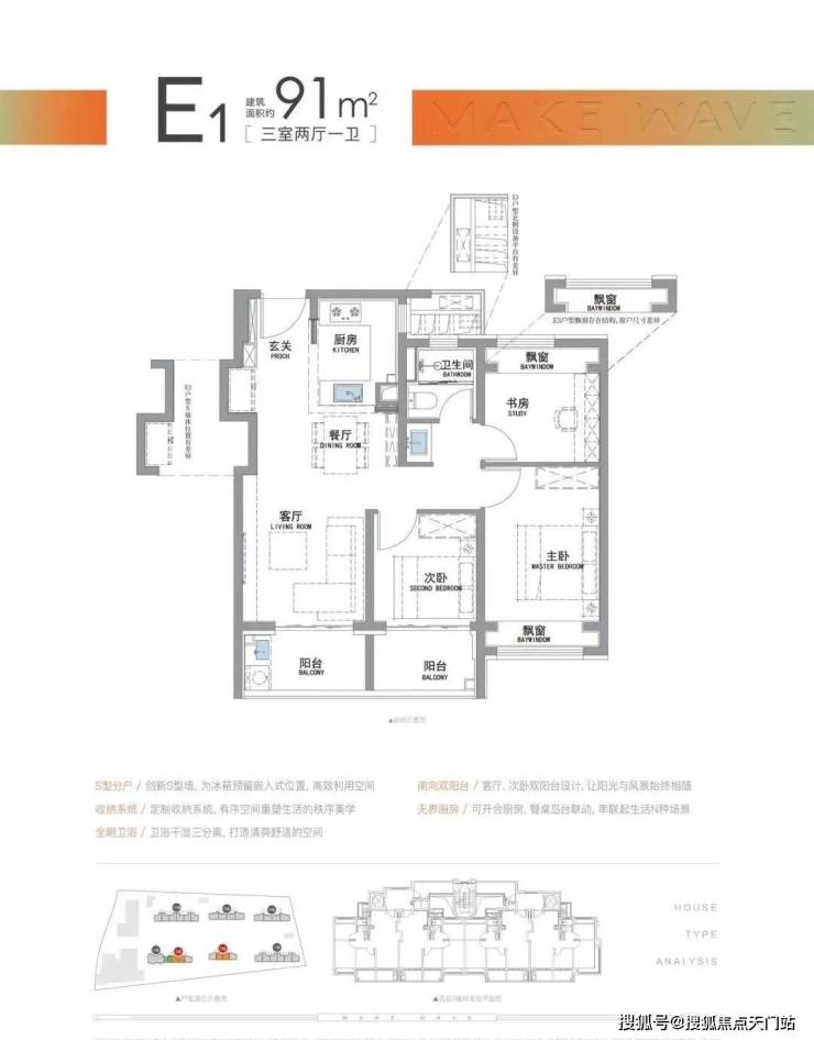 “南向双阳台+南北双飘窗”,构筑真3房户型!
