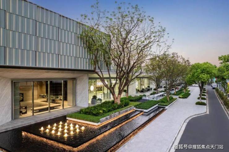同时,部分采用 天青色釉面陶板,超扁平形制,同样搭配 大面幅落地Low-e三玻两腔玻璃,让建筑像是妙手剪裁的艺术品般行云流水,更大程度的为业主带来宽绰视野,体验摩登生活。