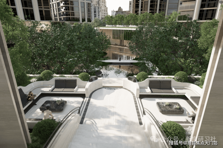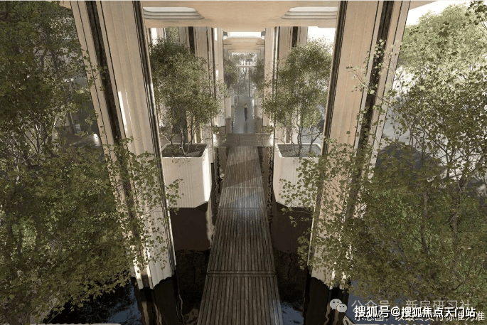 项目规划了七栋百米高层住宅(28-32层)、1栋83米高住宅(25层)和一栋86米高住宅(26层),容积率非常大。全部楼栋均采用一层架空设计,西侧四栋南偏西建筑群下设置了超大尺度的下沉庭院。