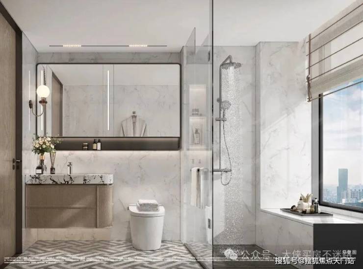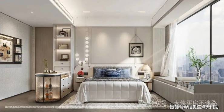 主卧套房尤其吸睛!以 270°转角飘窗打破传统空间边界,配合双台盆、大尺度衣帽间等顶配细节,将奢华居住体验浓缩于每一寸空间。飘窗台延伸出的休憩区与窗外景观形成对话,让私密时光也充满诗意。