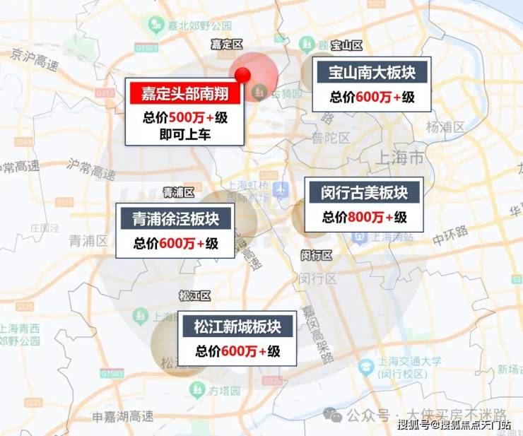 青浦徐泾,总价约600万级区域;宝山南大,总价约600万级区域;松江新城,总价约600万级区域;闵行古美,总价约800万级区域......