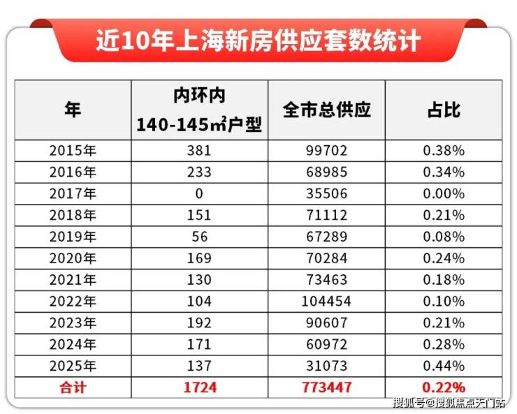 静安内环占全市面积约1.8%,却集聚了全市约8.58倍教育资源、约11.84倍医疗资源、约6.34倍商业资源(数据来源:《上海统计年鉴》)。根据近10年上海新房供应数据统计,静安内环内建面约112-143㎡三四房户型供应呈现明显的稀缺性特征。