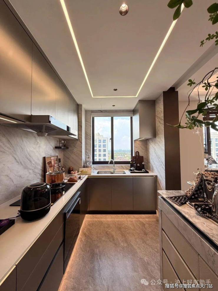 客餐厅一体化,且空间相对独立,客厅南连宽景阳台,加上层高均3米,尺度感和空间感铺展开来;