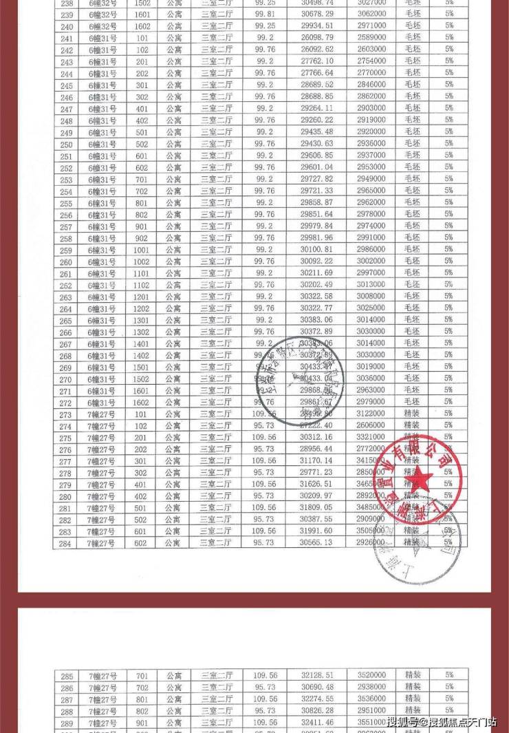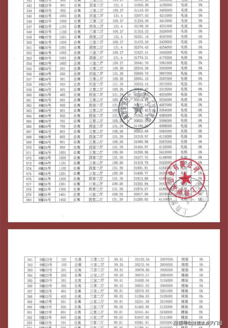项目一房一价表