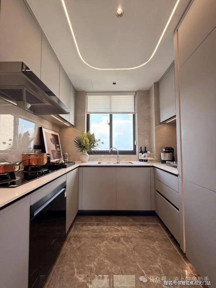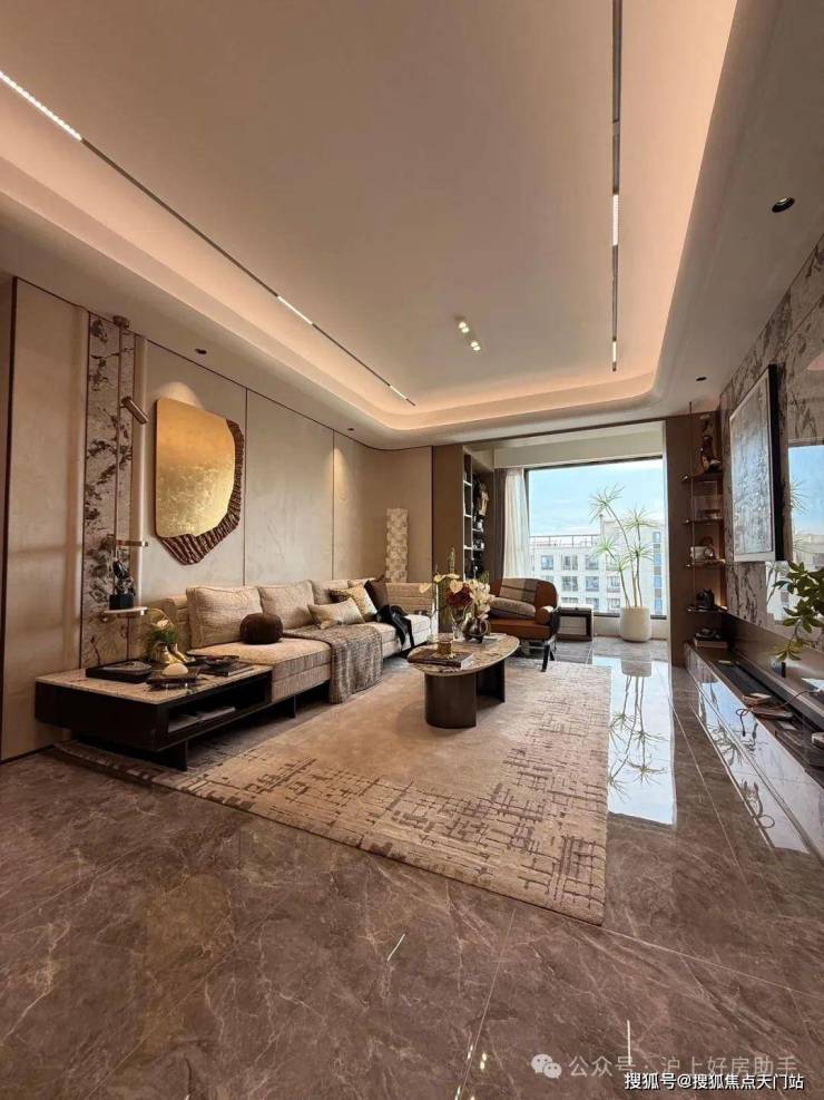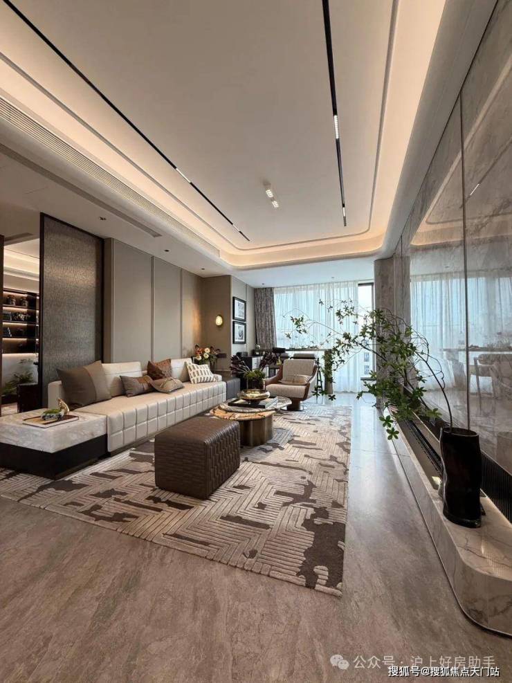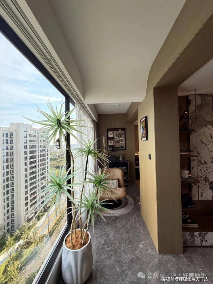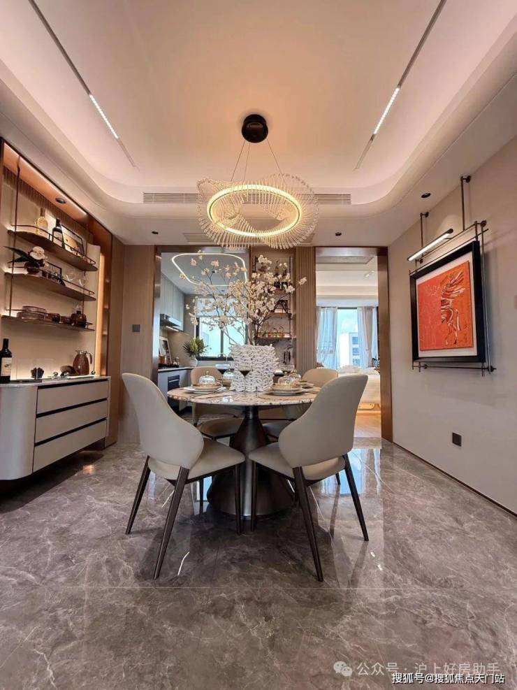 客餐厅相对独立,客厅+次卧南连约6.7米宽景阳台,餐厅北连大飘窗,层高3米,室内空间尺度瞬间体现出来;