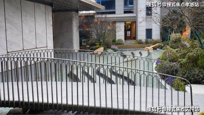 细看踏水桥,精致栏杆、定制铺装、弧形石材收边,满满都是开发商的细节巧思