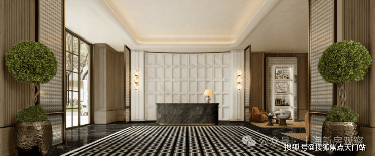 社区主入口更是兼具豪华酒店与海派元素设计风格,挑高约6米的入户大堂、水系景观与艺术家共创作品交相辉映,奢华感和高级感拉满!
