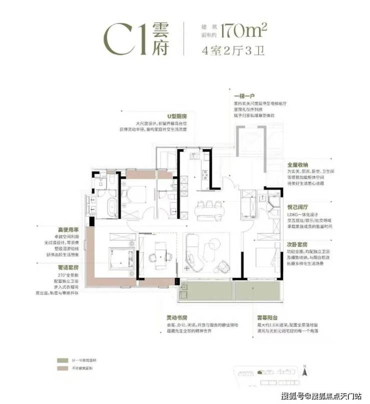 随后推出的 170㎡“悬浮全景舱”,直接引领上海高端户型革新—— 南向 15.8 米四面宽让每个空间都享阳光平权,深 U 型厨房预留西厨岛台,约8.35 米双阳台兼顾功能与情绪价值,双套房 + 270° 全景窗 + 三卫设计,更将 “新平权主义” 落到实处,让每位家庭成员都有私密空间;