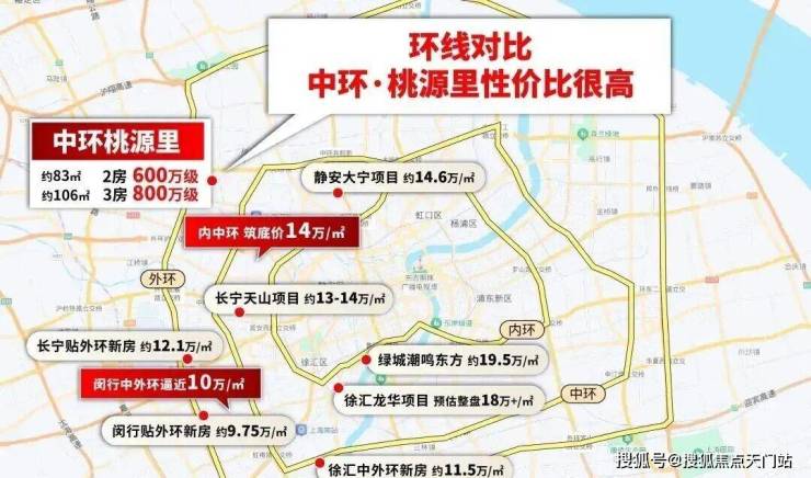 目前,中环筑底价基本14万/㎡:静安大宁约14.6万/㎡,长宁天山13-14万/㎡;长宁贴外环的项目已12.1万/㎡,甚至闵行靠外环的项目已逼近10万/㎡。