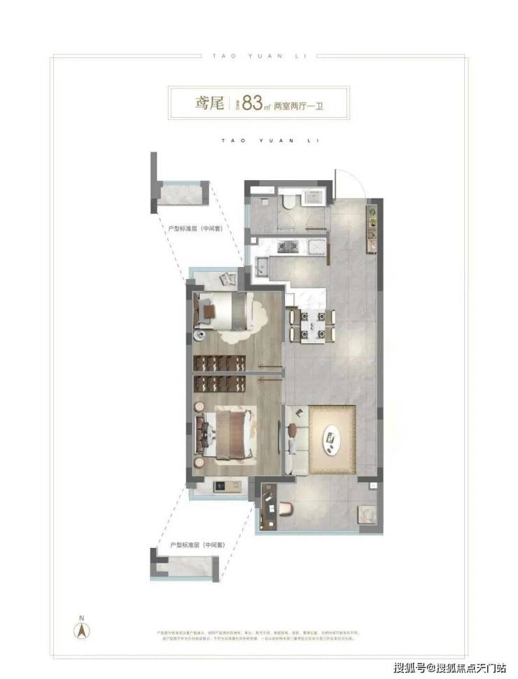 83㎡2房作为市场罕见的“入门级豪宅”,装修标准高达约4000元/㎡,客餐厅一体化设计搭配通阳台,空间利用率拉满,两卧均带飘窗;