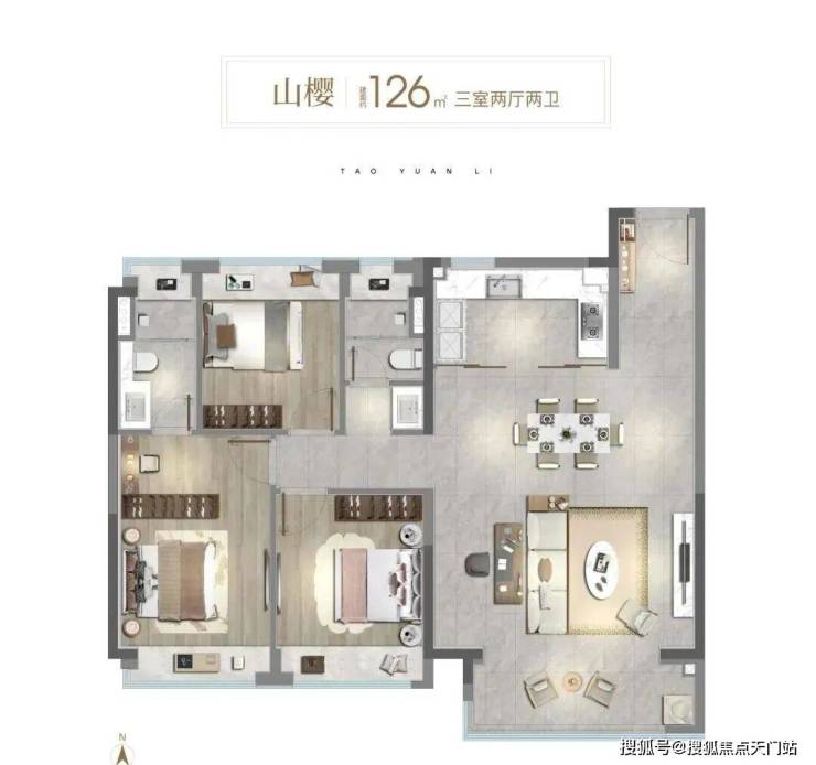 106㎡3房则做到“真三房”,不是市面的“2+1”,而是每个房间都能做卧室;约3.45米客厅面宽、开放式可视厨房、南向大阳台,让家庭公共活动空间更显开阔。