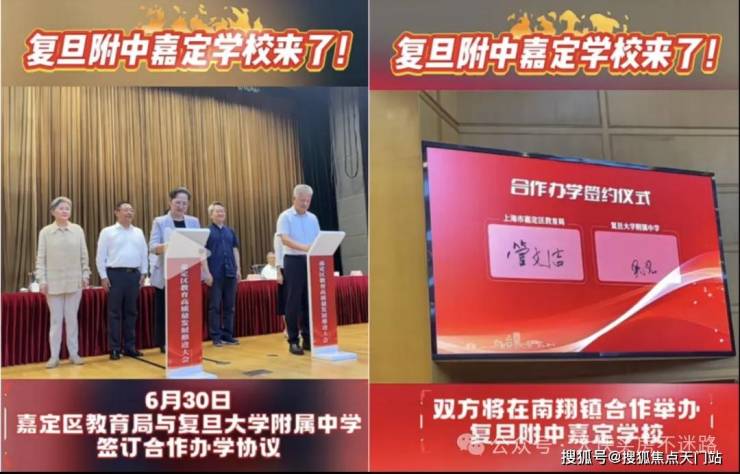 6月30日, 嘉定区教育局与复旦附中签订合作办学协议,双方将在南翔镇举办复旦附中嘉定学校!