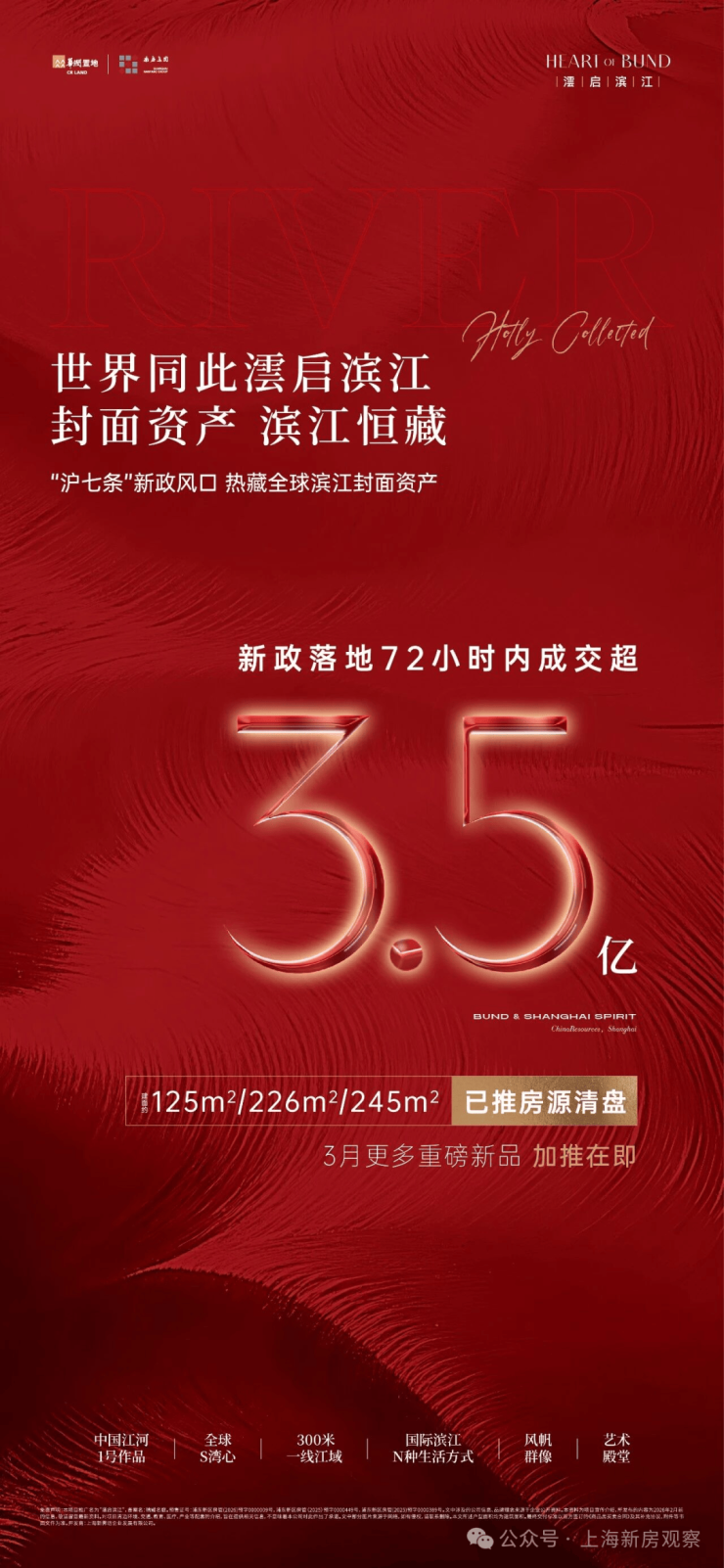 最新消息!浦东后滩一线滨江「澐启滨江」三开三捷!在新政落地72小时内成交超3.5亿,125㎡/226㎡/245㎡已推房源全部清盘!库存严重告急!四批次加推135套 约185-235㎡新品 房源;均价134156元/m²!认购金200万;认购时间:3月18日-3月22日!参观看房请提前线上预约!