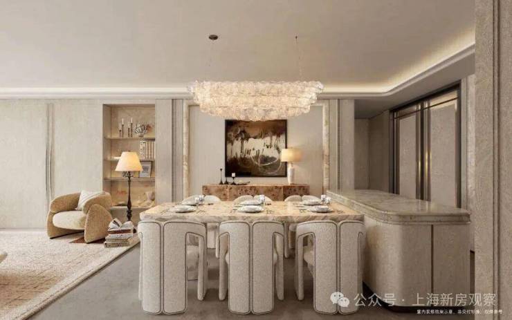 另外,因为豪宅客户对于精装美学有自己的审美,所以此次项目提供了超越行业的三大柔性定制——艺术家联名定制入户门把手、艺术家联名定制艺术门牌挂画以及墙面饰面&岛台等区域提供多款石材/岩板款式。