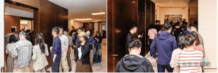 沙盘区宾客如云,洽谈区座无虚席,样板房里置业顾问与客户聊得热火朝天,甚至楼下都大排长龙!