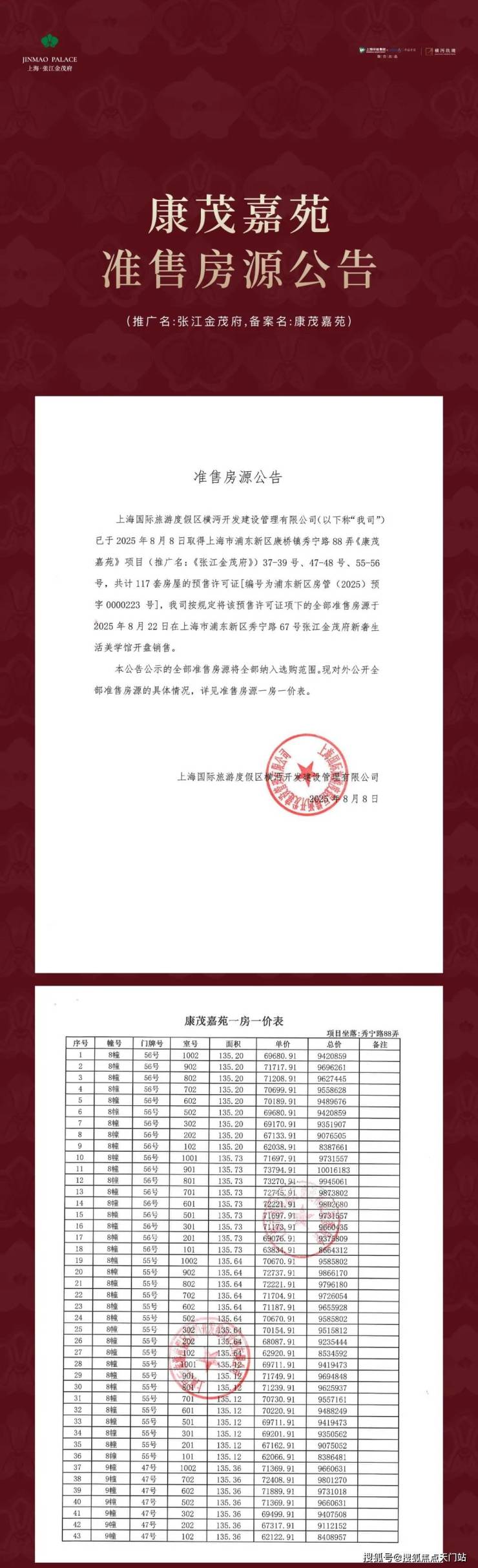 最新消息, 张江金茂府 !偷偷的来了!浦东首座金茂府,一房一价表首发!建面约92-138㎡3-4房整盘联动价约6.8万/㎡.实际6.7万/平,