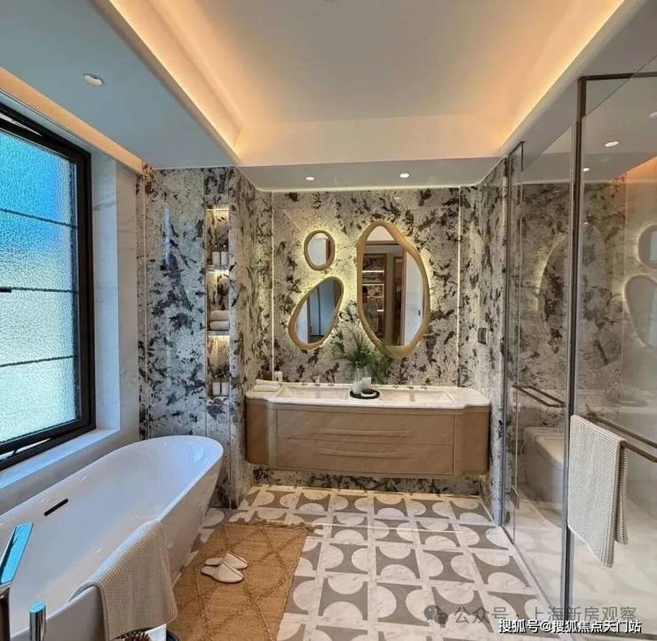 社区内设有 上海风情的“三院”、海派精奢的三花园,让优雅的生活氛围随之铺展开来。 下沉庭院整体长约18米,进深约9.5米,庭院的上下景观通过水帘相连通,中间结合有着层层叠水的水景,搭配水晶砖的景墙,将品质感拉满。
