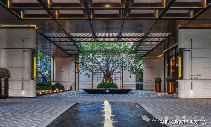 进入地库,墙面平面软石优雅排布,辅以琥珀冰晶岩板玄关背景墙,尊崇归家礼序;行至坡道玄关,水磨石地坪经铜条收边勾勒出利落线条,还原天然质感,匠心打磨历久弥新;驶入主车道,仿金属碳晶板天花吊顶搭配精妙造型灯带,营造精致摩登体验;进入落客区,地库入户大堂打造高定奢艺背景墙,简约气派,成就质感生活。