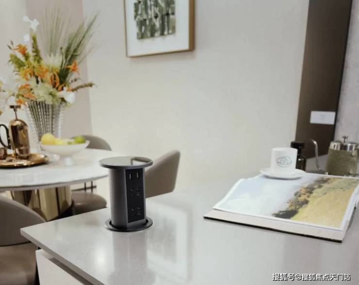 春晓园作为一个年轻的产品,深谙年轻人心理。在厨房配置的升降插座也非常实用, 不仅安全不占用空间,而且还可以为手机无线充电 。