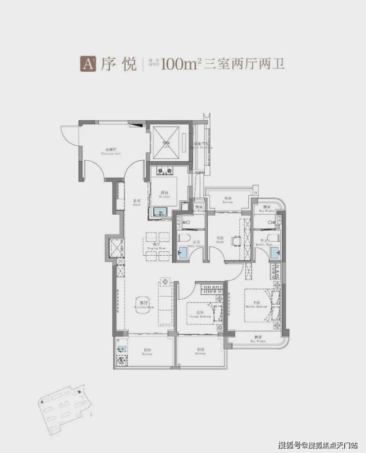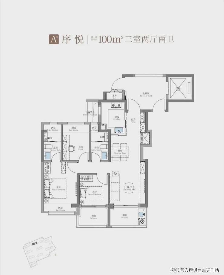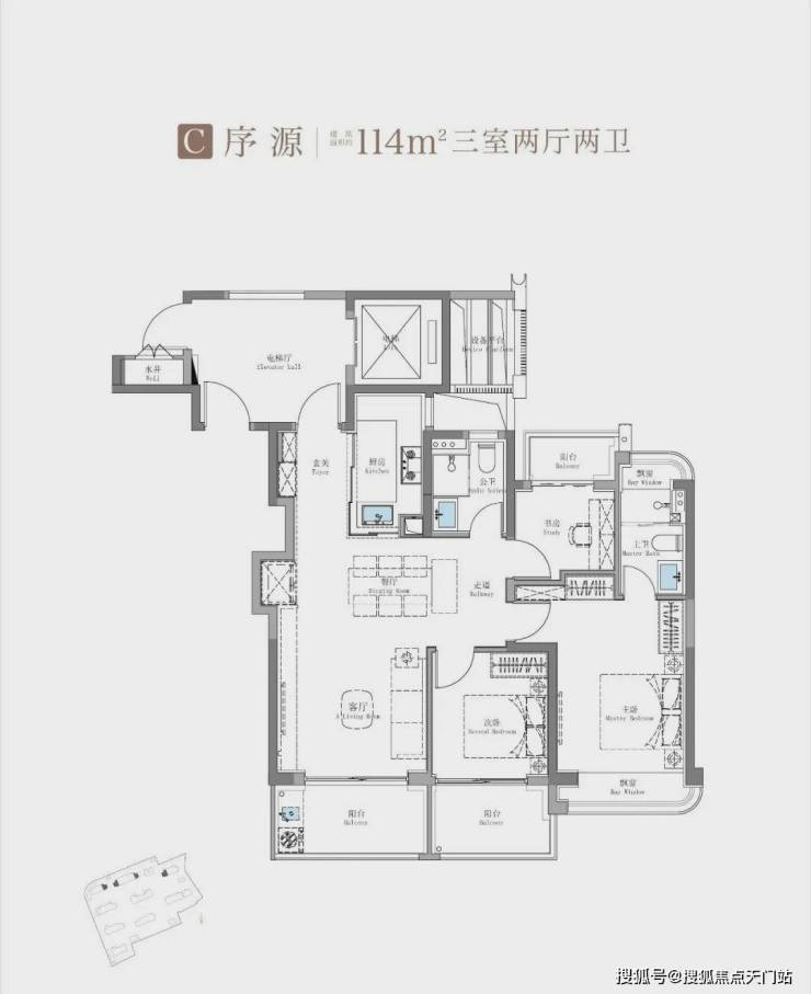 除了建面约100㎡3房外,这个建面约114㎡产品也是主打: