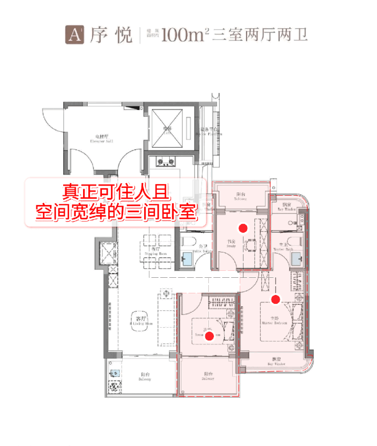 拥有三间超宽绰3房的百平米户型!