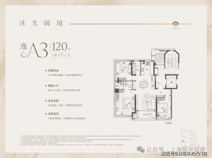 南向约9.3米超大面宽,搭配约3.3米的朗阔层高 , 营造出恢宏通透的空间尺度感。客厅与南向阳台完全打通,延伸出一片融于自然的阳光厅堂,推窗即见私家庭院,实现室内外场景的自由切换,演绎真正的墅居生活意境。