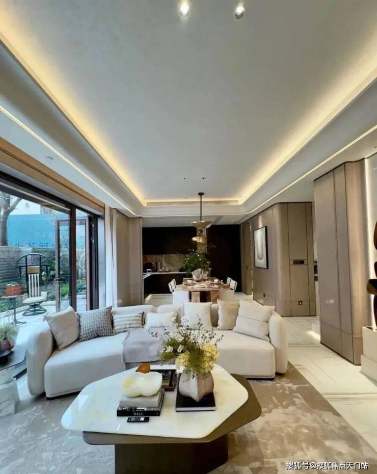 一楼面向庭院全景大玻璃落地窗真正意义上实现借景入室,是空间互融更是诗意盛放,客餐厅等空间集中于南侧于风景的相拥中宽享知味时光,至享生活浪漫。