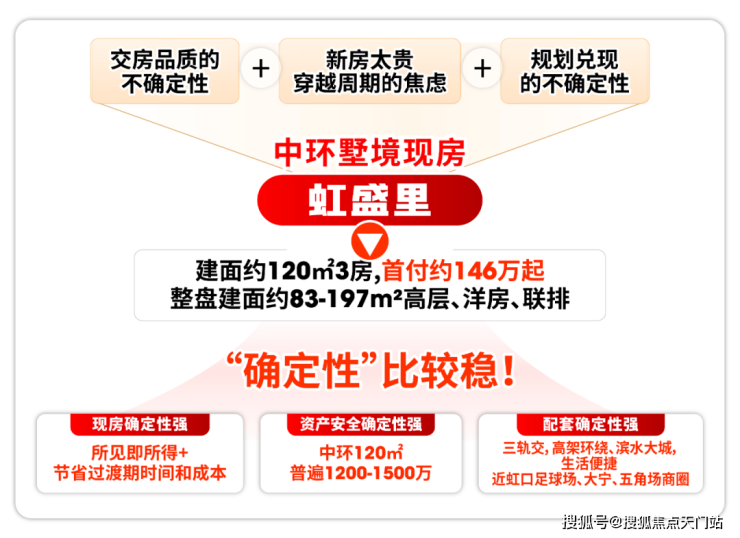 虹盛里则以显著价格优势打破僵局,项目咫尺中环,直线距离内环仅约1.8公里,首付约146万起即可购入120㎡3房。