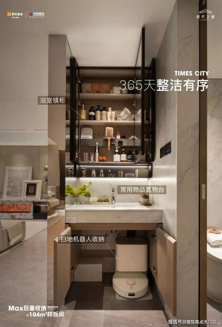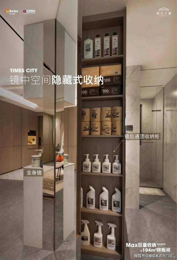 从最新开放的104户型样板间可以看出,项目对新品户型的收纳储藏空间做了全维升级,实用性更强。