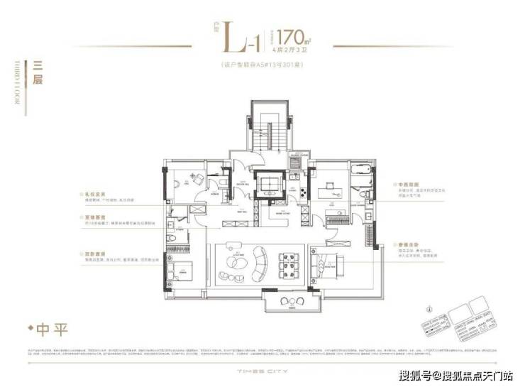 建面约133㎡样板间效果图: