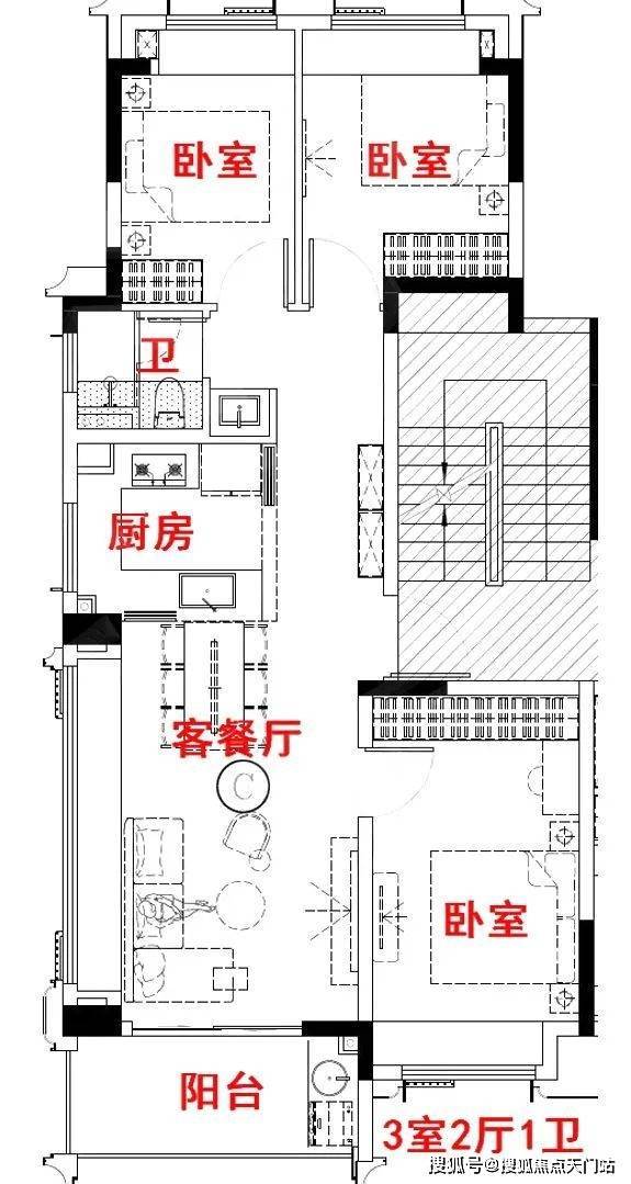 户内楼面高度不一致,错开之处有楼梯联系。但没有完全分为两层。(适合大面积住宅,小户型会显得局促)