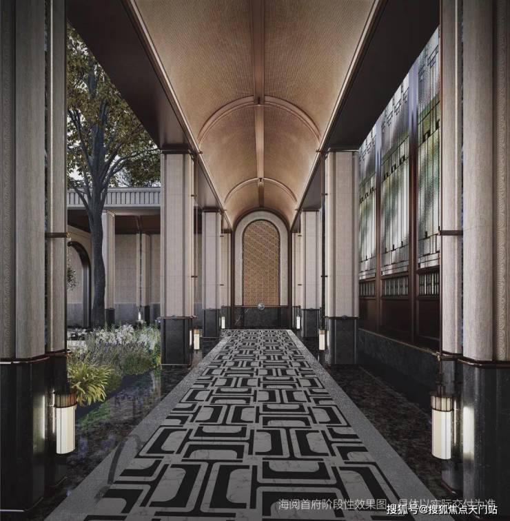 生动的海派经典场景,还从室外的园林景观延伸到了室内的公区。比如涵盖健身、阅读、宴请等 多重空间的架空层,能让业主足不出户享受现代功能的同时,感受海派的优雅萦绕。
