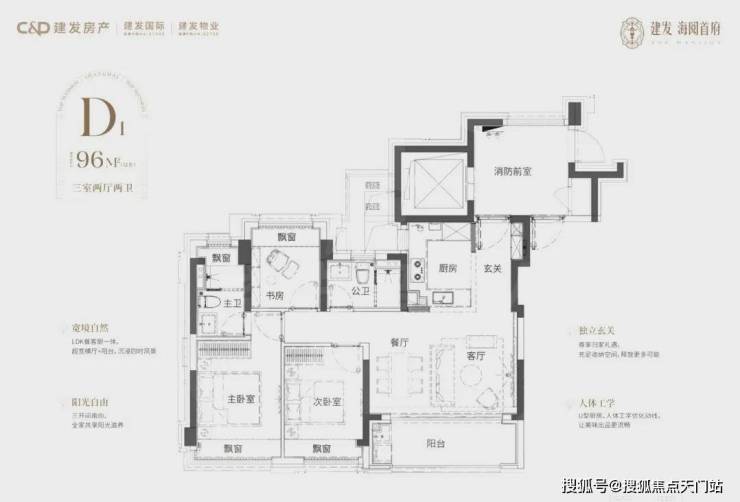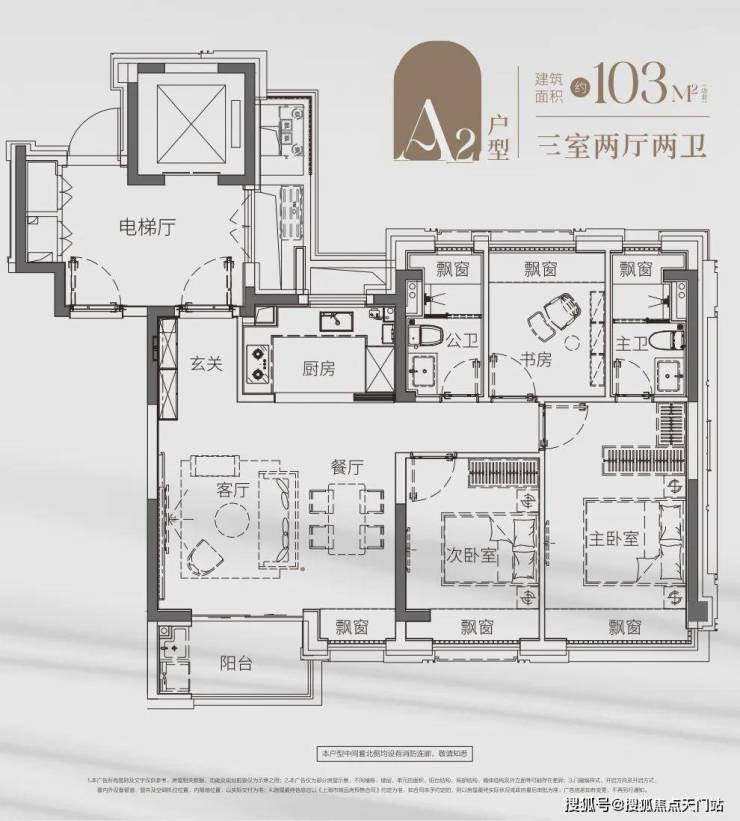 这套 建面约103㎡动静分离户型打破常规, 兼具三个房间和南向超阔面宽的横厅,以此承载从二人世界到三代同堂的全生命周期需求。